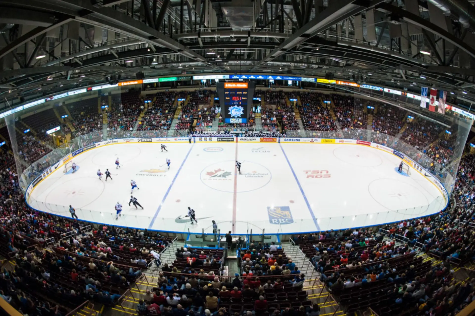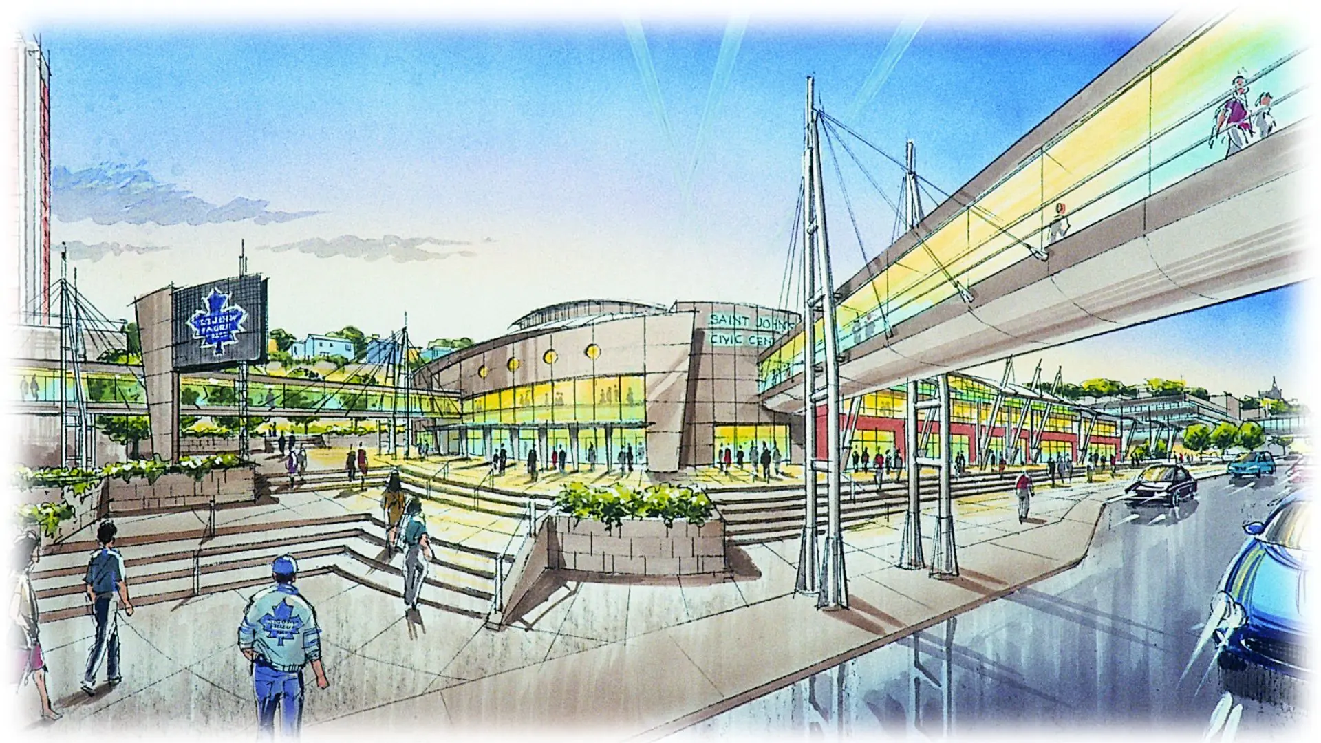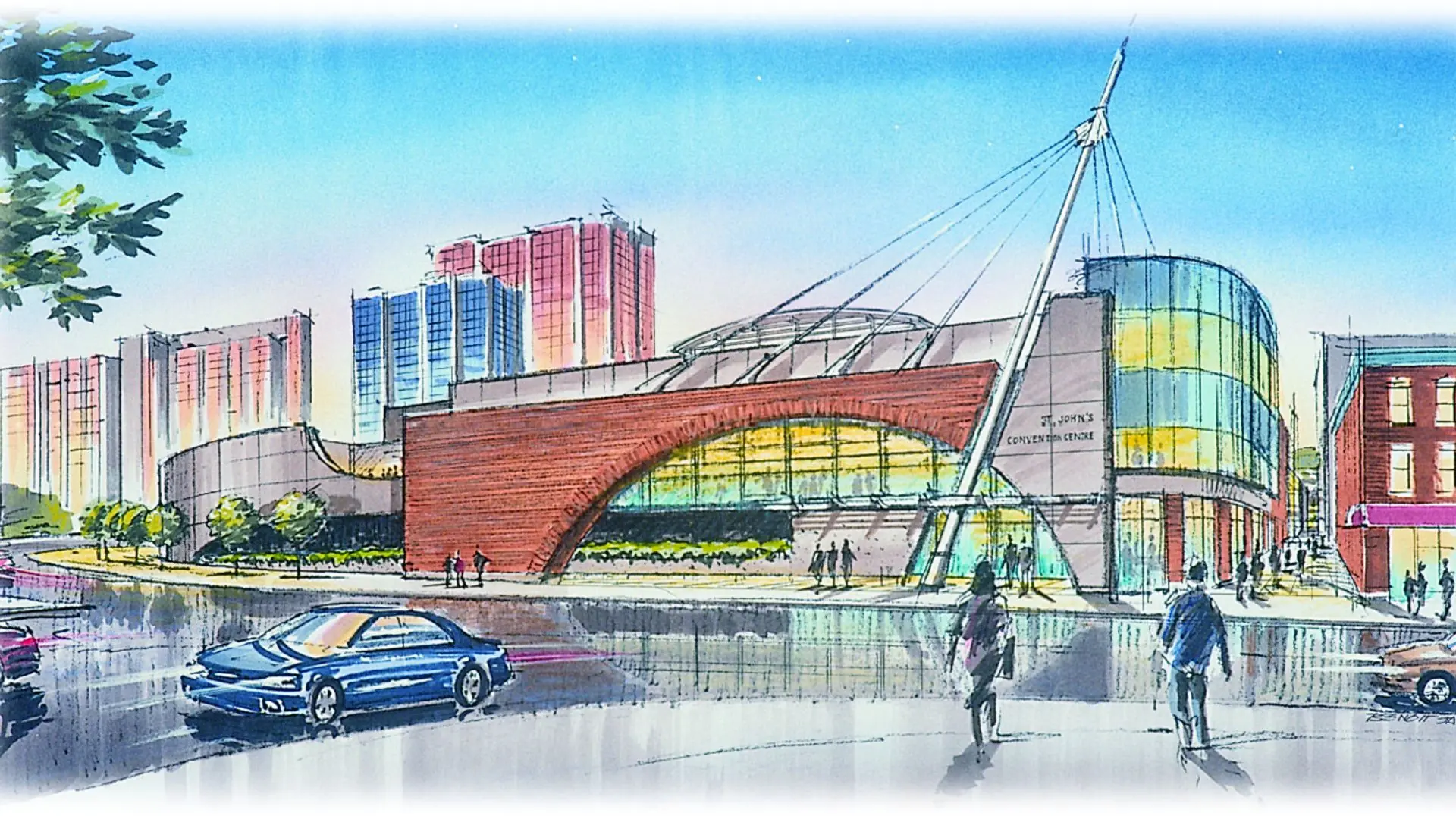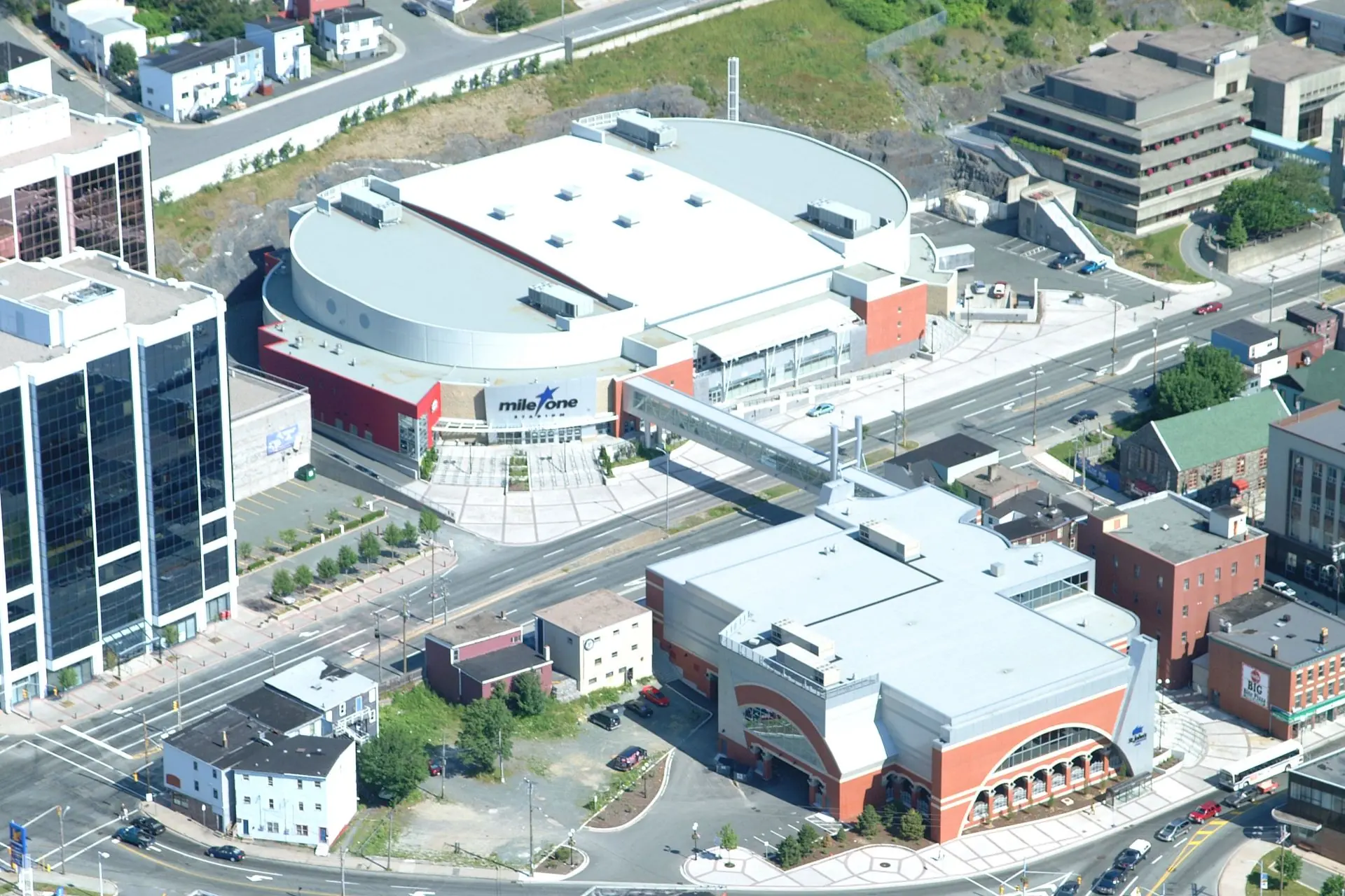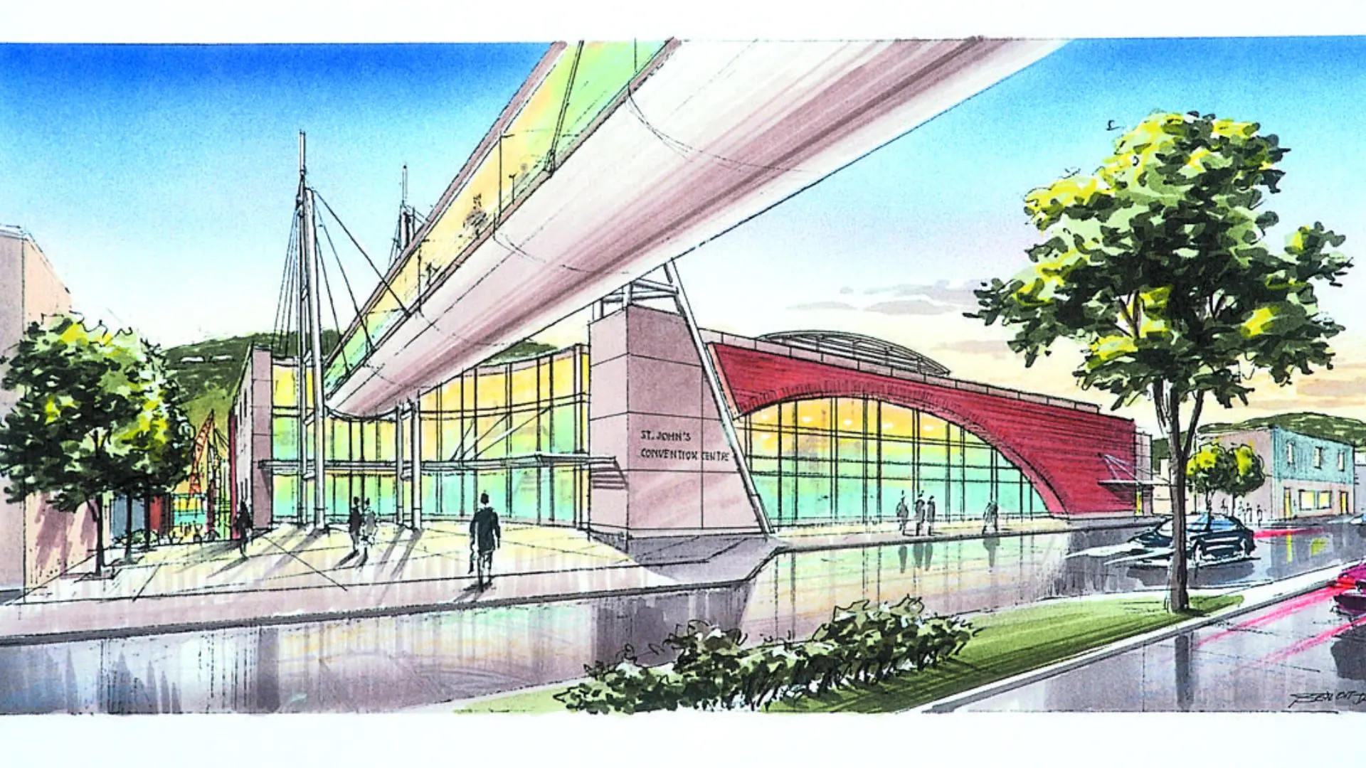 As the winner of a two phase design competition, this project was awarded in 1998. The project consists of two separate facilities: a 6000 seat spectator facility on the North side of New Gower Street, a 40,000ft2 convention facility on the South side of the street. The two buildings are linked with an overhead pedestrian skywalk and a plaza at the West End of George Street. The large convention assembly room is equipped with a full kitchen and the hall is sized to service 1200 people seated.